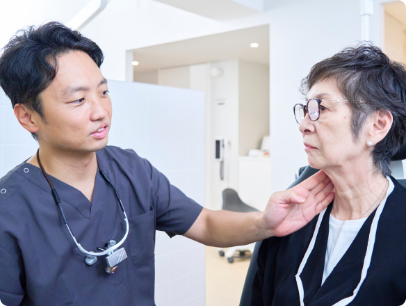 お口の中をより精密に診るために、拡大鏡を使用しています。肉眼では見えにくい部分も、明るく拡大された視野で確認できるため、細かな異変を見逃さず、的確な診査や治療が可能になります。
